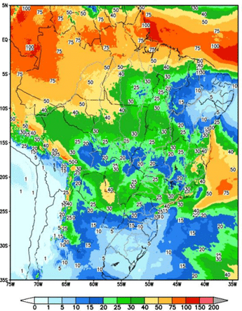 Nesta semana, a combinação de um sistema de baixa pressão e uma frente fria deve causar chuvas nas principais bacias do SIN, com maiores volumes previstos nas bacias dos rios Madeira e Tapajós.