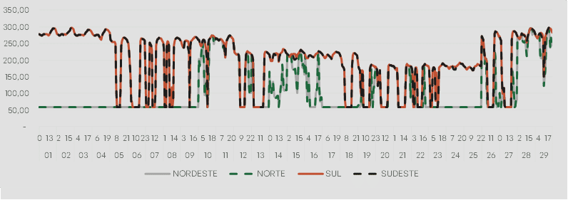 A Câmara de Comercialização de Energia Elétrica – CCEE divulgou o Preço de Liquidação das Diferenças – PLD, que mantém a tendência de alta nas regiões Norte e Nordeste, com valores se aproximando de R$ 105/MWh. Nas regiões Sul e Sudeste, os preços se mantêm com médias em torno de R$ 201,00/MWh, até o momento.