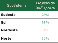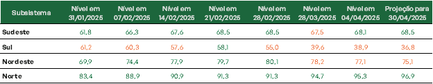 Previsão de níveis de armazenamento para final de abril/2025 (%)