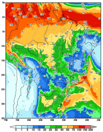 Áreas de instabilidade sobre as regiões Centro-Oeste e Norte devem provocar chuvas nas principais bacias hidrográficas dessas áreas. Os maiores acumulados de precipitação são esperados nas bacias dos rios Xingu, Madeira, Tapajós, Uruguai, Iguaçu, Tocantins, Paranaíba e na cabeceira do rio São Francisco.