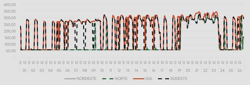 O Preço de Liquidação das Diferenças (PLD), divulgado pela Câmara de Comercialização de Energia Elétrica (CCEE), apresentou valores médios mais elevados nos submercados Sudeste/Centro-Oeste e Sul. As demais regiões registraram preços mais amenos.