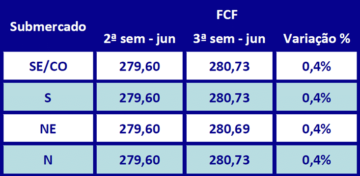 A pequena variação da FCF está relacionada à revisão das previsões de afluência para o sistema, que continuam abaixo do esperado. O cenário também incorpora a atualização dos dados de carga.