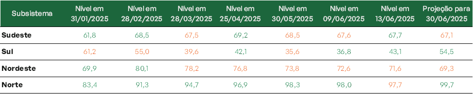 Previsão de níveis de armazenamento para jun/2025 (%)