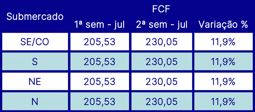 Quanto à Função de Custo Futuro – FCF, subiu 11,9%, alcançando média de R$/MWh 230,05, impulsionada pelo descompasso nas expectativas nas previsões de afluências e pelos níveis de reservatórios abaixo do esperado. Embora a FCF não determine diretamente o PLD, sua alta acende um alerta: se as condições operativas e hidrológicas não melhorarem, há risco de aumento nos preços nas próximas semanas.