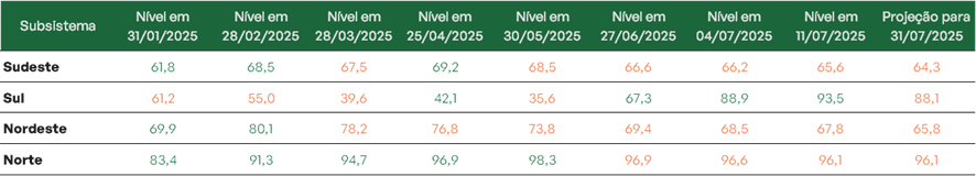 Previsão de níveis de armazenamento para jul/2025 (%)