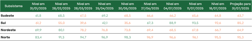 Previsão de níveis de armazenamento para jul/2025 (%)