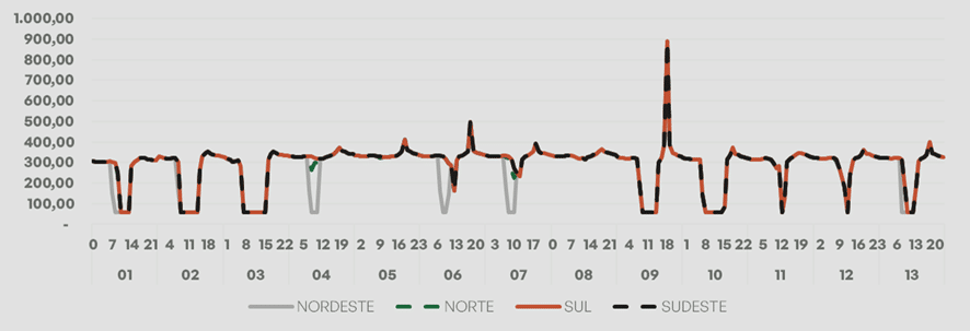 Preço do Nordeste é o único abaixo da média dos submercados.