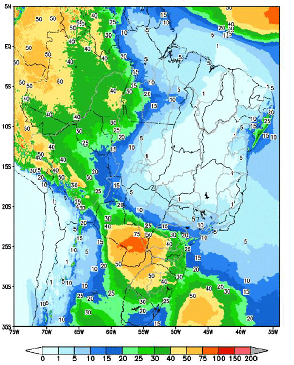Previsão de precipitação de 29/09/2025 a 03/10/2025
