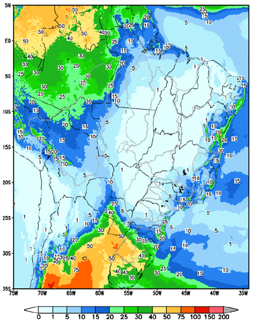 Previsão de precipitação de 29/08/2025 a 05/09/2025
