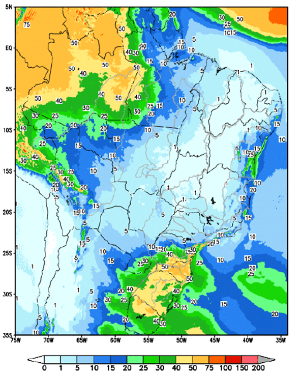 O relatório destaca que a passagem de frentes frias e áreas de instabilidade provocou chuvas próximas da média semanal nas bacias dos rios Jacuí, Taquari-Antas, Uruguai, Iguaçu, Paranapanema, Tietê, Grande e Paranaíba. Também foram registradas pancadas isoladas nas bacias do Madeira, Tapajós, Xingu e Tocantins. A previsão para os próximos dias é de manutenção desse padrão, com precipitações concentradas principalmente no Sul e volumes ainda baixos nas demais regiões.