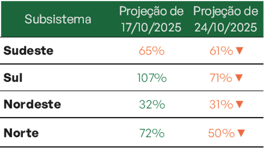 Previsão Semanal de ENA de 25/10/2025 a 31/10/2025
