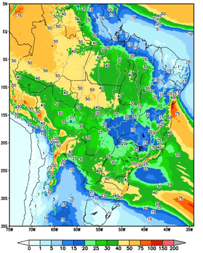 Segundo o ONS a atuação de uma frente fria sobre as Regiões Sul e Sudeste no início da semana, responsável por precipitações nas bacias dos rios Jacuí, Uruguai, Iguaçu, Paranapanema, Tietê, Grande e Paranaíba, com volumes próximos da média semanal. No Norte e Nordeste, persistem as pancadas isoladas nas bacias dos rios Madeira, Tapajós, Xingu e Tocantins. Para os próximos dias, a expectativa é de manutenção desse padrão, com chuvas concentradas no Sul e ainda irregulares nas demais regiões.